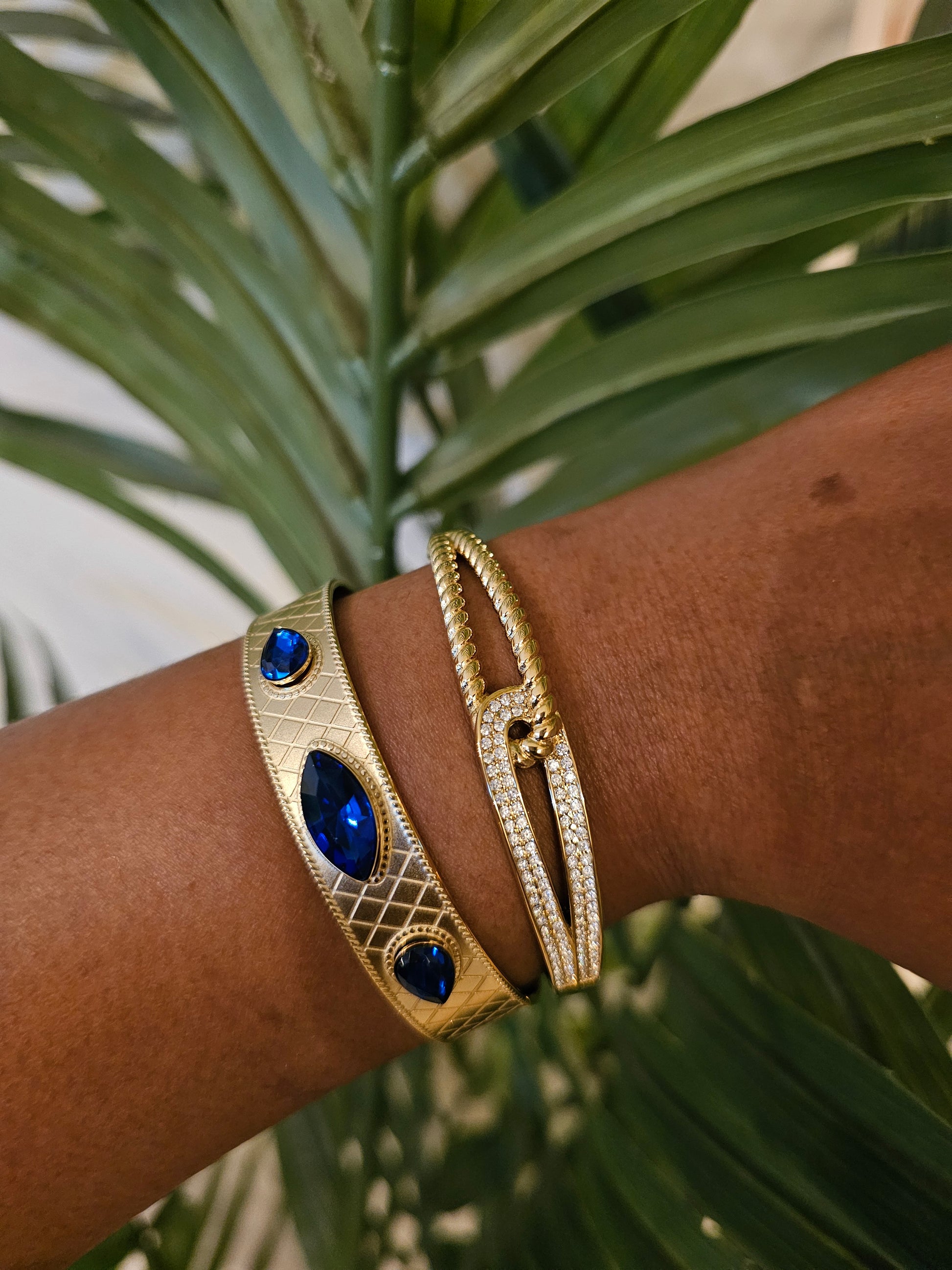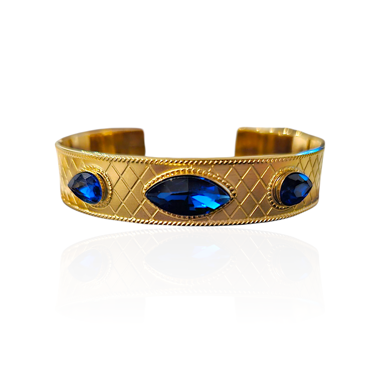 Le jonc AZURIA en acier inoxydable est un bijou de luxe avec une taille ajustable et des zircons bleus magnifiques. Élégant et exclusif, il apporte une touche de sophistication à votre look. Ajoutez une touche de couleur et de brillance à votre tenue avec ce bijou raffiné.