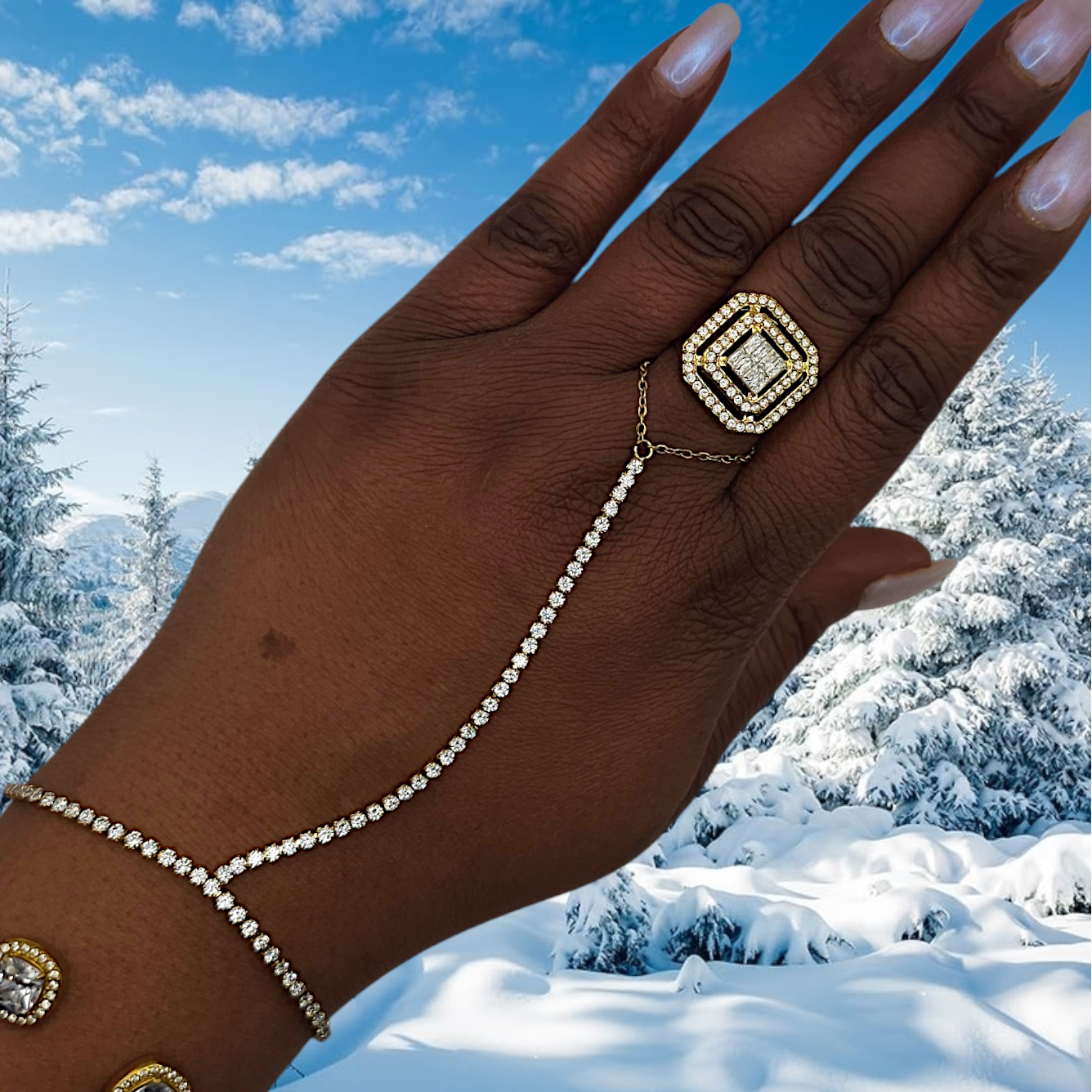 Chaîne de main élégante ornée d'une rivière de zircons scintillants.