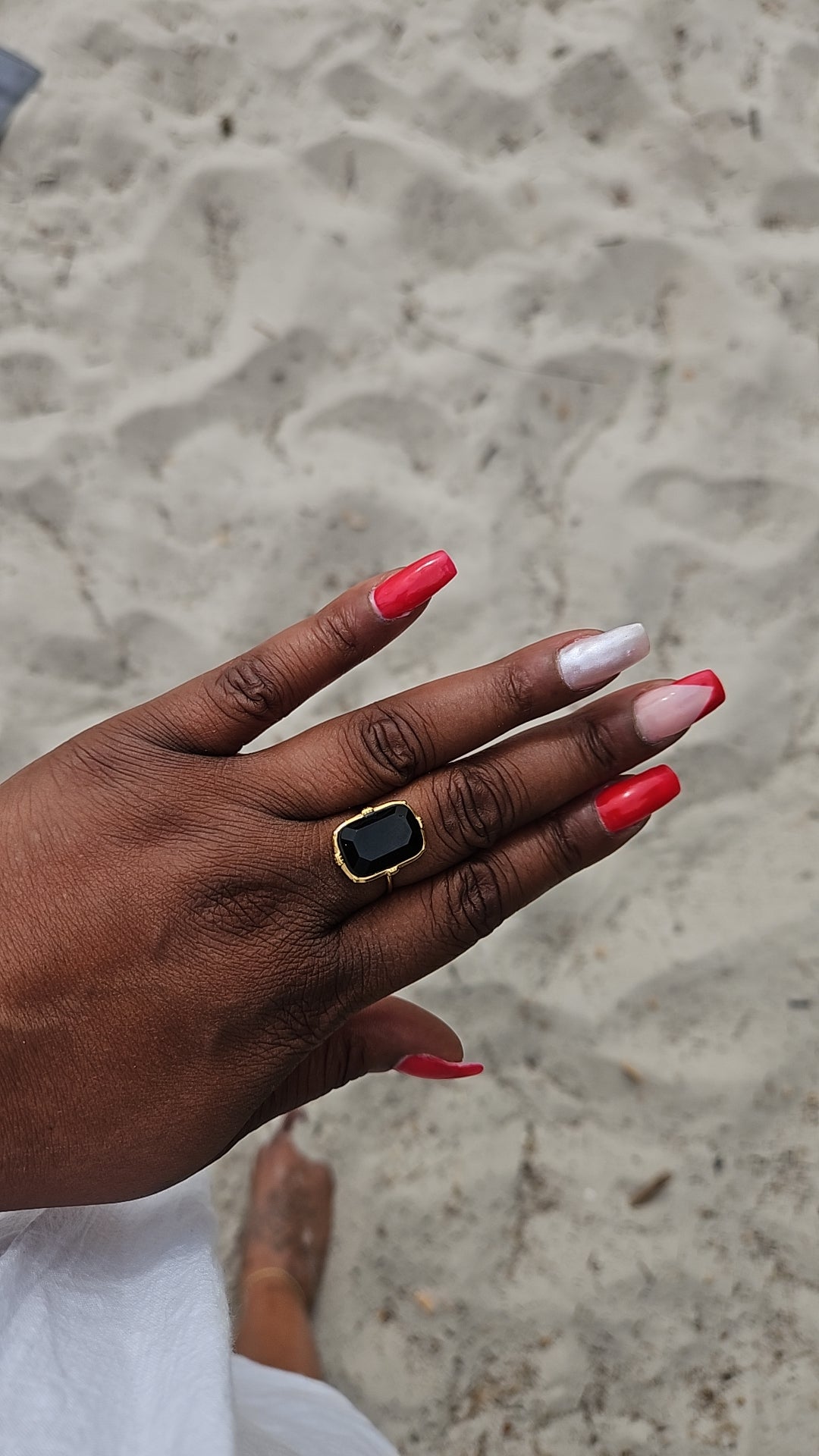 Découvrez la bague Arietta, une élégante en acier inoxydable, ornée d'un onyx noir. Son design simple et délicat sublime votre style tout en apportant équilibre émotionnel, calme intérieur et confiance. Parfaite pour accompagner votre quotidien avec raffinement et sérénité.