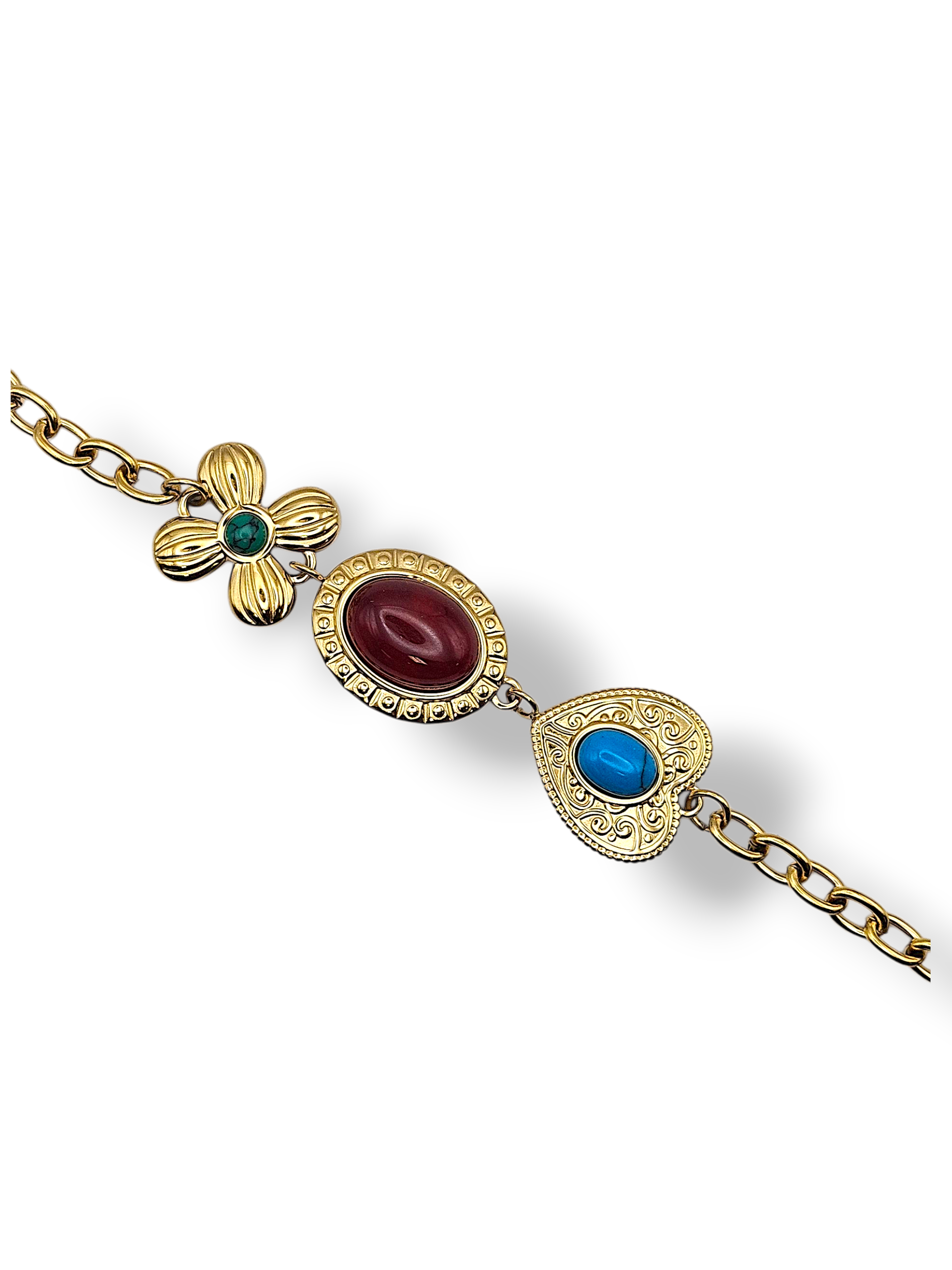 Découvrez le BRACELET JADE, un bijou en acier inoxydable au design élégant et ajustable (19+4 CM), orné de tourmaline, turquoise et malachite. Chaque pierre naturelle insuffle couleur et énergie, offrant un style raffiné et une touche d’originalité. Robuste et confortable, il sublimera vos tenues tout en vous apportant les bienfaits des pierres naturelles. Adoptez ce bracelet pour une allure chic, authentique et pleine de vitalité chaque jour.