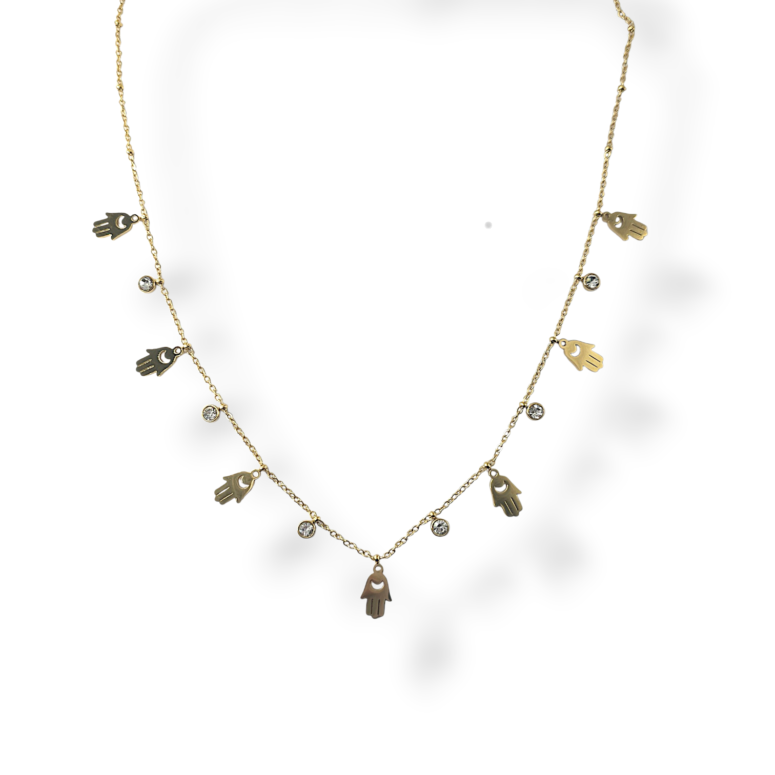 Apportez une touche d’élégance et de symbolique à votre style avec ce collier délicat orné d’une breloque Main de Fatma sertie de zircon scintillant. Symbole de protection et de chance, ce bijou allie raffinement et modernité pour sublimer vos tenues au quotidien comme lors d’occasions spéciales