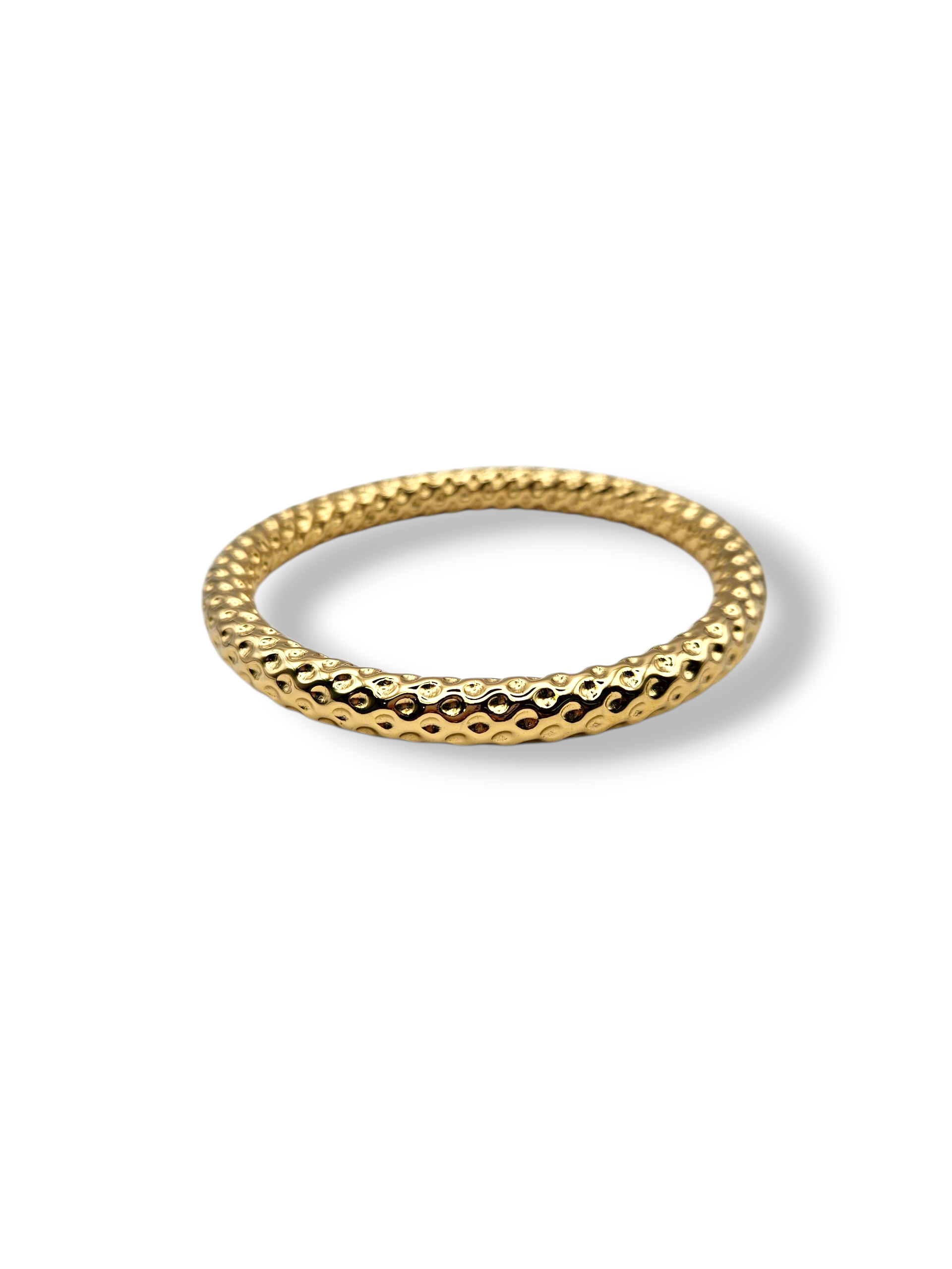 Le jonc Flavia en acier inoxydable offre un design texturé unique et une dimension de 65 mm pour un confort optimal sans réglage. Solide et élégant, il accompagne votre quotidien en toute simplicité, apportant une touche subtile et durable à vos tenues.