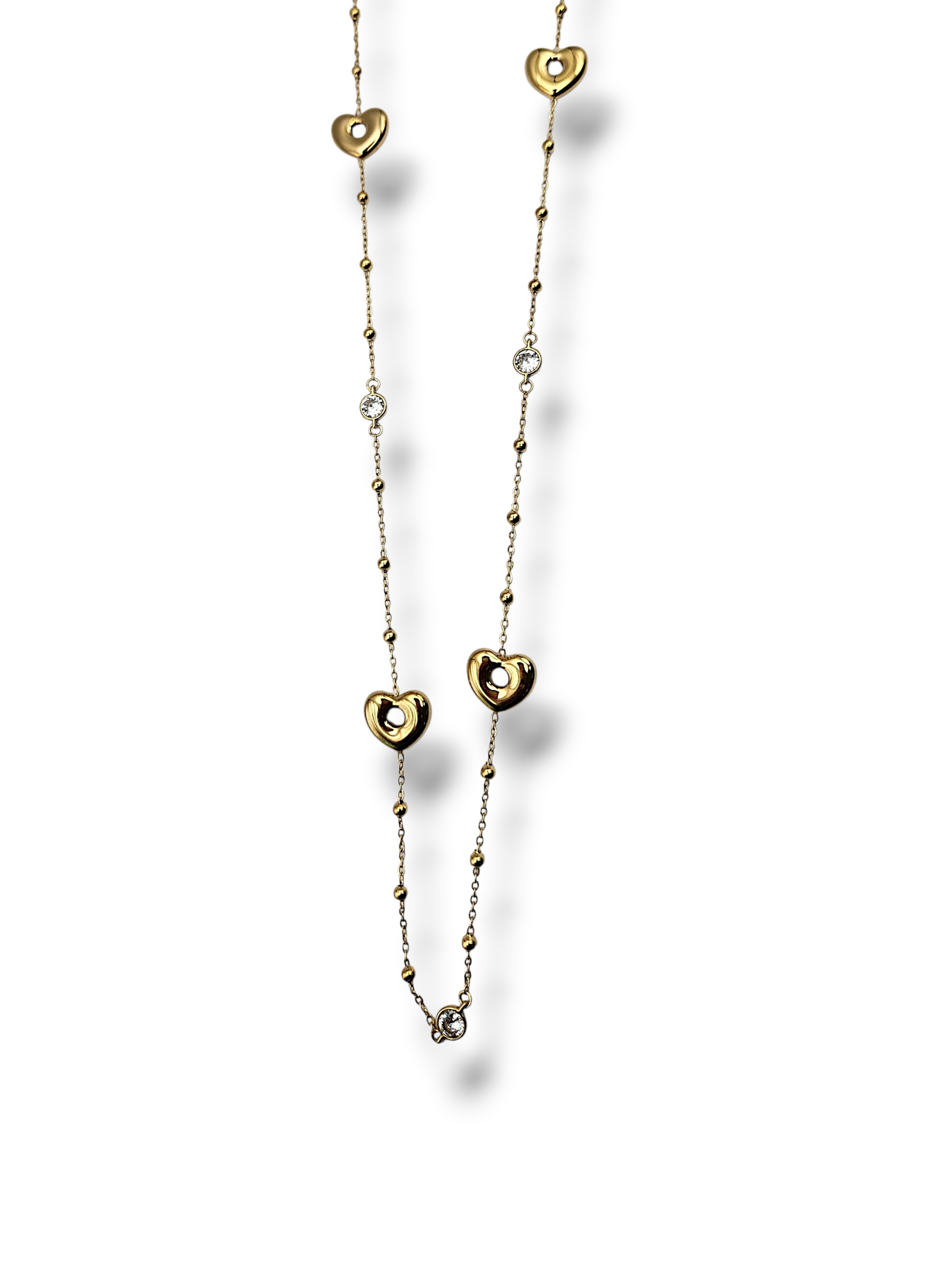This elegant sautoir features a delicate small heart motif adorned with sparkling zircon stones, crafted in durable steel. With a generous length of 70 cm, it beautifully drapes to enhance any outfit, offering a subtle touch of charm and sophistication. Perfect for everyday wear or special occasions, it combines timeless design with lasting quality.