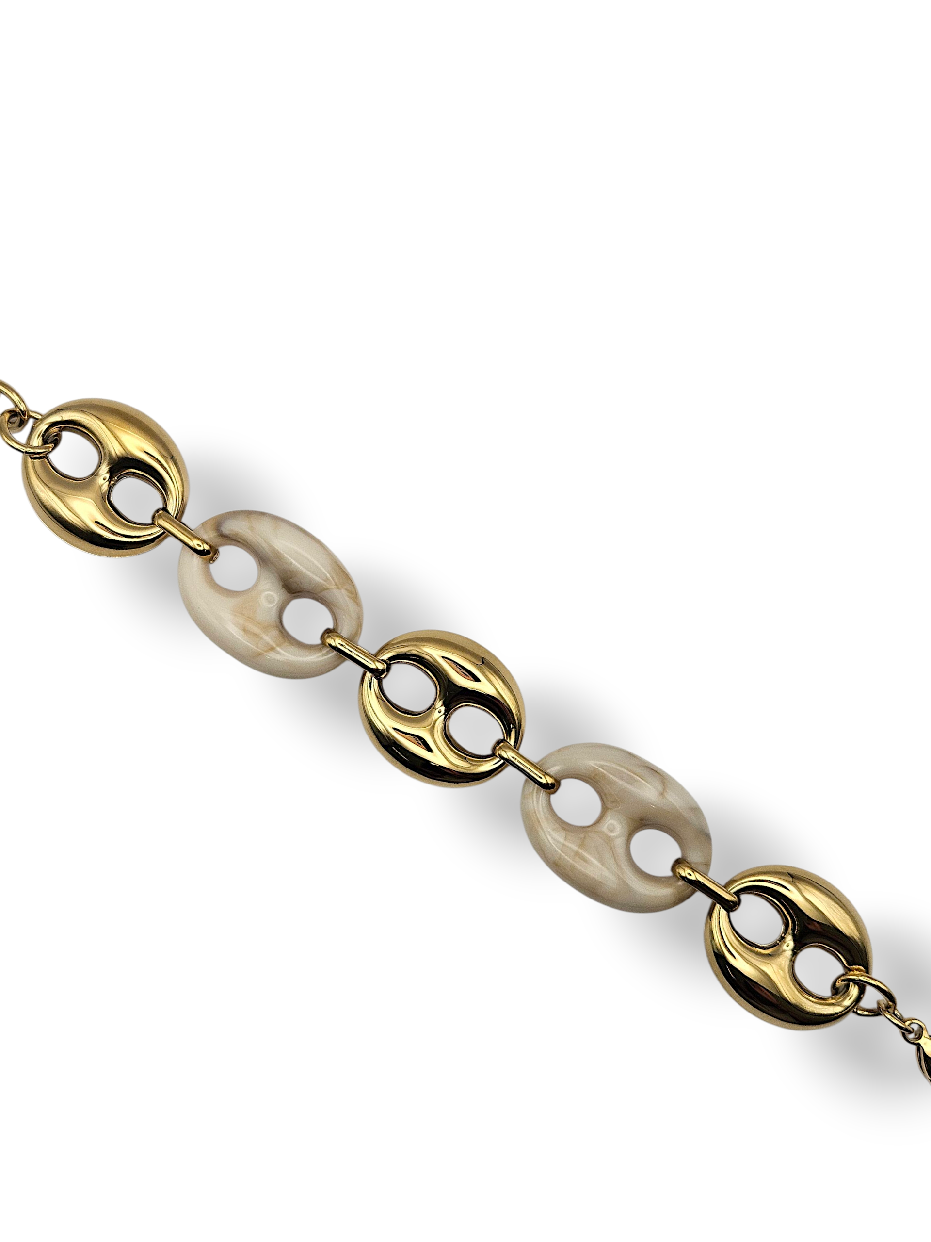 Le bracelet Georgina allie élégance et robustesse avec son design maille graine de café en acier inoxydable. Sa finition raffinée souligne un style moderne qui met en valeur votre poignet. Ajustable de 19 à 23 cm, il offre un confort optimal tout au long de la journée, parfait pour sublimer toutes vos tenues en toute occasion.